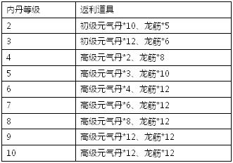 活动规则:在刷新内丹重铸系统每消费800元宝即可获得高级元气丹*3奖励!