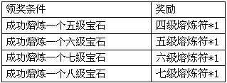 活动规则:活动期间,玩家每熔炼成功一个指定级别宝石,即可获得系统赠送的好礼一份。