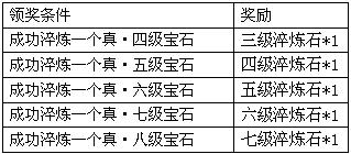 活动期间,玩家每淬炼成功一个指定级别的真·宝石,即可获得系统赠送的好礼一份。