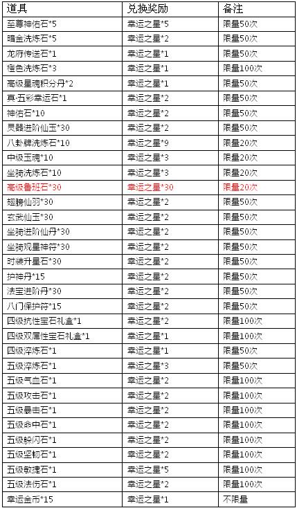 活动期间,40级以上玩家每天登陆游戏可获得额外奖励:仙宠精魂·紫*16、仙宠口粮*12、幸运金币*2、神秘商店令牌*2、飞仙令牌·绿*10、高级铜钱卡*6。