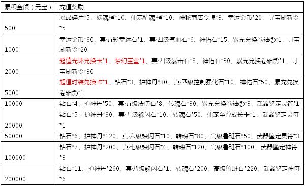 活动规则:活动期间,单笔充值达到指定额度,还可以获得以下超值丰厚的奖励哦!