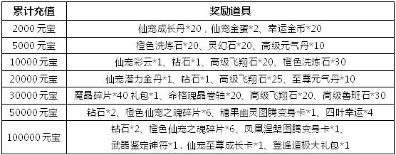 温馨提示:活动期间累计充值元宝达到对应条件,奖励由邮件发放,请注意领取。