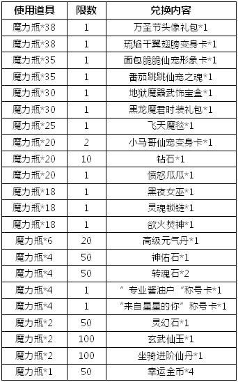 【活动内容】活动期间,使用一定数量的魔力瓶可兑换以下奖励。