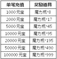 【活动内容】活动期间,单笔充值一定数量以上的元宝即可获得对应档次的奖励,每档奖励获得次数不限。