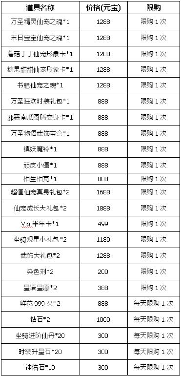 【活动内容】活动期间,玩家可以超值价格购买以下珍贵道具,数量有限,勿错失良机。