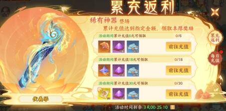 在游戏第二周将会开启为期6日的返利活动,包括每日返利和活动期间总返利,神君参与活动有机会获得【稀有神器】和【资质80神灵】,还有海量召唤券和种族召唤券可以获取