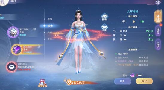 开启魂环功能获得魂环,额外增加属性及外显。魂环年份越高,属性加成越高,外显越强,彰显自身实力。