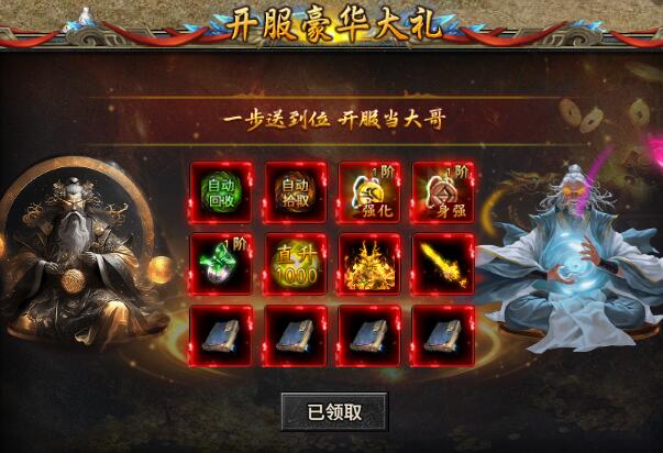 一步送到位,开服当大哥!自动回收特权、自动拾取特权、主印·强化、辅印、复活戒指、时装、武饰打包赠送,助你早日问鼎沙城!