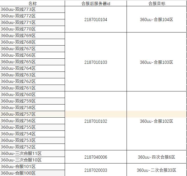为了让大家有一个更为广阔的战斗和交流的舞台,我们决定对以下服务器进行合服操作,更为激烈的战斗将等待着您!