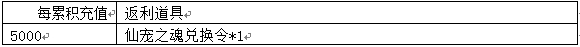 活动规则:活动期间,每累积充值达到5000元宝可获得豪礼馈赠!