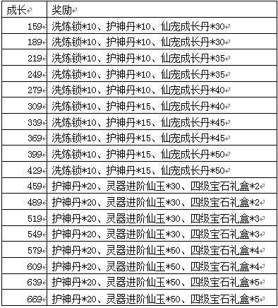 活动规则:活动期间,将仙宠提升至指定成长可获得额外奖励。