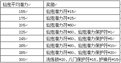 活动规则:活动期间,将宠物提升至指定潜力,可获得额外系统赠礼。