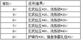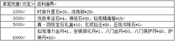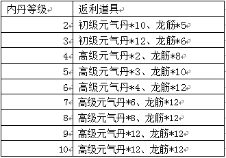 活动规则:活动期间,在刷新内丹重铸系统每消费800元宝即可获得高级元气丹*3奖励!