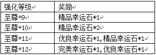 活动规则:活动期间,任意装备至尊强化成功至指定级别,都可获得额外奖励。