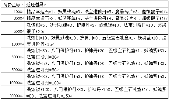 活动规则:活动期间,玩家在除市场外其他全部系统累积消费至指定额度,可获得额外的奖励。