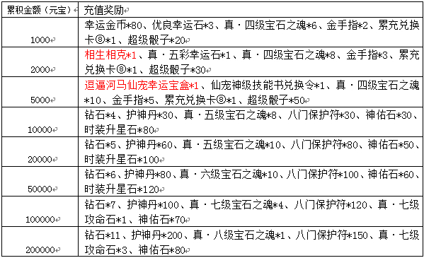 活动期间,累积充值达到指定额度,还可以获得以下超值丰厚的奖励哦!