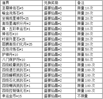 活动期间,40级以上玩家每天登陆游戏可获得额外奖励:仙宠精魂.紫*8、仙宠口粮*8、绑定铜钱卡*8、飞仙令牌.绿*5、神秘商店令牌*1。