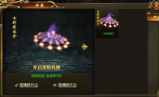 1、七彩琉璃伞:通关闯天关第3关可以解锁该神器