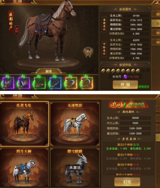 1、可通过坐骑丹升级坐骑,提升等级有更多属性加成
