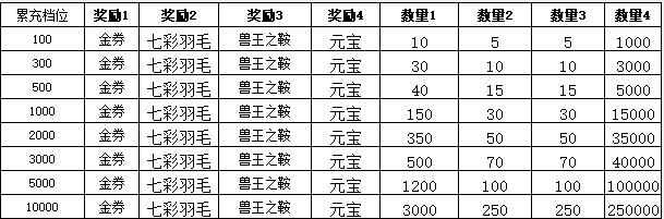 2、单日充值满足条件即可领取所有满足档位返利(每天档位不能重复领取,隔天刷新)