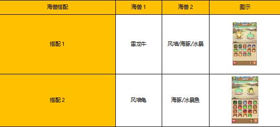 海兽上阵搭配:玩家等级到达五十五级时可以上阵两只海兽(上限),目前存在两种搭配。