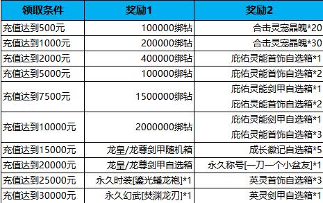 活动内容:活动期间内,限时累计充值达到指定档位,可领取对应档位奖励。